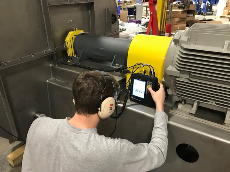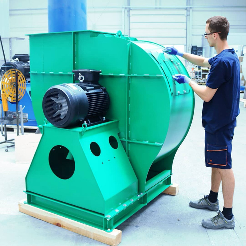 4.高壓離心風機與風機蝸殼產生的共振而發生噪音,所以在加工風機蝸殼的過程中,一定要確保風道順暢且弧形精準,焊接機殼是,焊路要平穩順暢牢固。安裝時;風管與風機蝸殼的內面接縫處要平整,避免粗糙不平,造成撕裂聲。而由于接連的不平行或擴大的管路會產生共振,使細微的聲音變大,造成更大的噪音。所以在與使用方溝通時,可以在風管外面覆以防音材料,可以降低噪音。在根據客戶的需求設計風機時,可以通過箱體包裝風機,箱體內六個板面可增加隔音板或隔音材料,從而降低高壓通風機運行時的噪音。